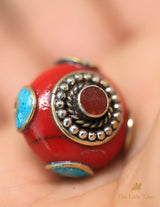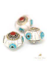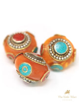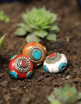 Saucer Beads - Nepal Beads - Inlay Beads - Turquoise Inlay Beads - Tibetan Inlaid Beads -Tibet beads - E2