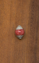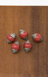 Tibetan Barrel Inlay Beads – Red Coral & White Metal (Pack of 5)