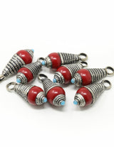 Create unique jewellery with these handmade Tibetan teardrop pendant beads. Crafted from resin and white metal alloy, they feature a small loop for easy use as pendants on necklaces, bracelets, trinkets, or earrings. Their teardrop design resembles miniature seashells, adding a distinctive touch to your creations.