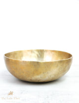This Tibetan singing bowl is rare, as it is a flatter-than-usual bowl that produces a distinct sound. It weighs 1035 grams and has a diameter of 19 centimetres, with a musical G note when struck with the suede-wrapped wooden striker. This bowl is a unique collectable; you will receive the exact bowl as seen in the picture. Its rarity makes it a valuable addition to any collection of singing bowls, and its thick wall construction ensures that it will provide a long-lasting and high-quality sound. This bowl is hard to find in the market.