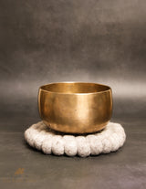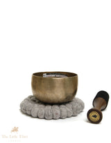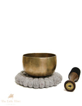 This unique antique Tibetan singing bowl features a tall-walled design, creating a distinctive profile and sound. Tuned to the C Note, it resonates with the Sacral Chakra, enhancing creativity, emotional flow, and sensual energy. Weighing just 425g and measuring 13.5cm in diameter, it is both portable and rare, with a clear tone that’s ideal for personal rituals, meditation, and sound healing sessions. Its vertical structure and aged surface lend it both acoustic strength and collector’s value.