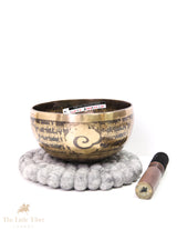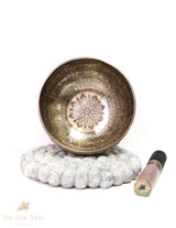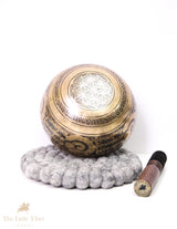 This Tibetan Singing Bowl, tuned to the B note for the Crown Chakra, weighs 868g and measures 17cm in diameter. It delivers vibrant, uplifting vibrations that aid in spiritual connection and enlightenment, making it ideal for meditation and higher consciousness practices.