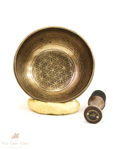Etched with the sacred “Om Mani Padme Hum” mantra on the outer wall, the bowl embodies compassion and wisdom. Inside, the Flower of Life symbol reflects unity and connection, while Buddha’s Wisdom Eyes at the base inspire mindfulness and spiritual insight.