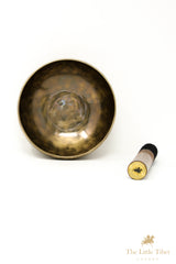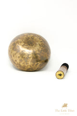 This is a unique, one-of-a-kind piece. You will receive exactly the same bowl as shown in the pictures, ensuring a truly special addition to your meditation or sound therapy practice. A suede-wrapped wooden striker is included to produce smooth, resonant tones. Note: The book is sold separately.
