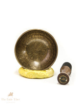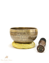 Hand-Beaten Tibetan Singing Bowl – Heart Chakra Sound Healing Bowl with Mantra Etching (Note D)- EC88