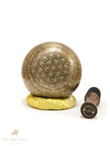 Inside, a delicate Yin-Yang symbol represents harmony and balance, while the Flower of Life etched at the base embodies the interconnectedness of all living things. This portable and visually striking sound healing bowl is perfect for meditation, chakra healing, sound therapy sessions, yoga practices, or as an elegant spiritual décor piece for your home or studio.