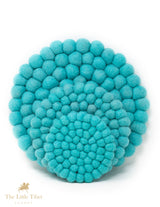 Singing Bowl Cushion - Aqua Blue Felt Ball Mat