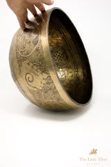 When you play a bowl, the resonances of calm and smoothing sonic vibration effectively penetrate our inner body and massage deeper level tissues. It also interacts with our brain waves to produce the theta waves, putting us in a meditative state.