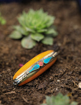 Materials: Golden, Turquoise and Red Coral resin, brass, refined earth