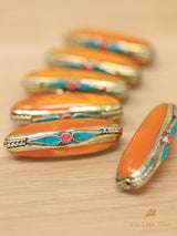 Handcrafted in Tibet, these versatile inlaid beads are perfect for creating stunning jewelry pieces. With their intricate designs and durable construction, they're ideal for making necklaces, bracelets, rosaries, and prayer malas. The possibilities for design are endless, allowing you to unleash your creativity and craft unique accessories that reflect your style and spirituality.
