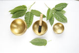 Crafted from brass with a captivating golden hue, these portable singing bowls are meticulously hand-finished to achieve a flawless round shape. Their compact form emits a pure, slightly higher-pitched tone, making them ideal for both individual and group meditation or sound healing practices. These bowls are especially well-suited for beginners in energy work, offering clarity and ease of use in every session. Each bowl comes with a suede-wrapped wooden striker and is perfect for stress relief, chakra work, and daily mindfulness routines.