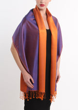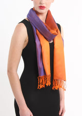 This two-toned silk pashmina shawl is gender-neutral in colours, design, and length.