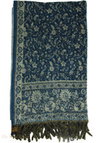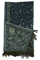 Mirage Blue and Lime Ash-Infused Floral Tibet Shawl - TS9A