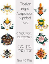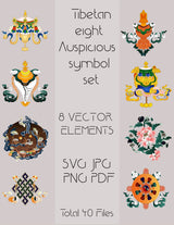 Tibetan Eight Auspicious Symbols – Digital Clipart Set (40 Files)